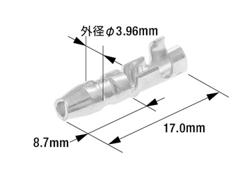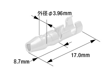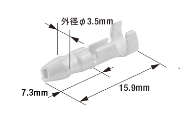 主に二輪車などで多く使用されており、標準タイプに比べ先端部が一回り小さいサイズのギボシ端子です。