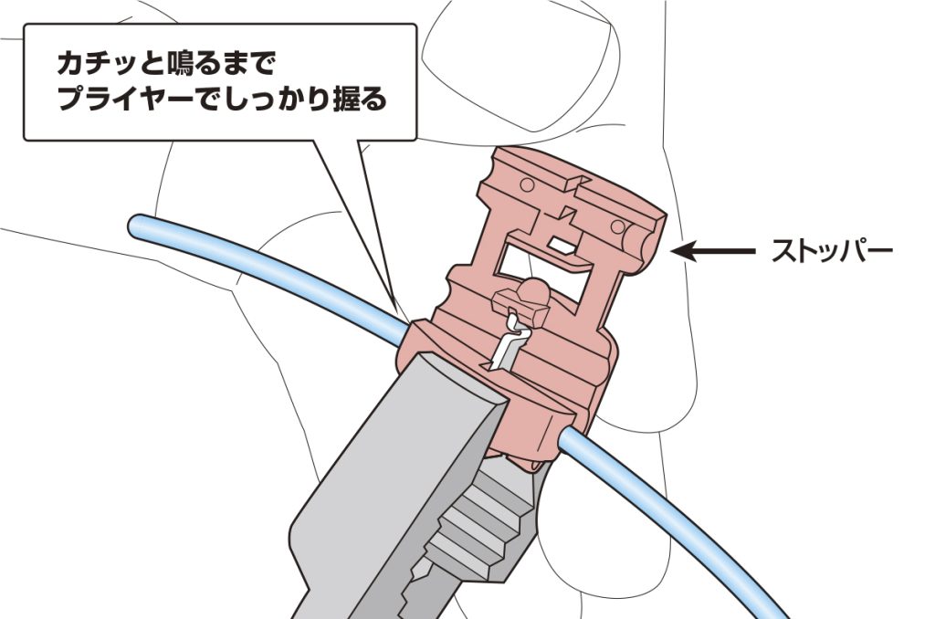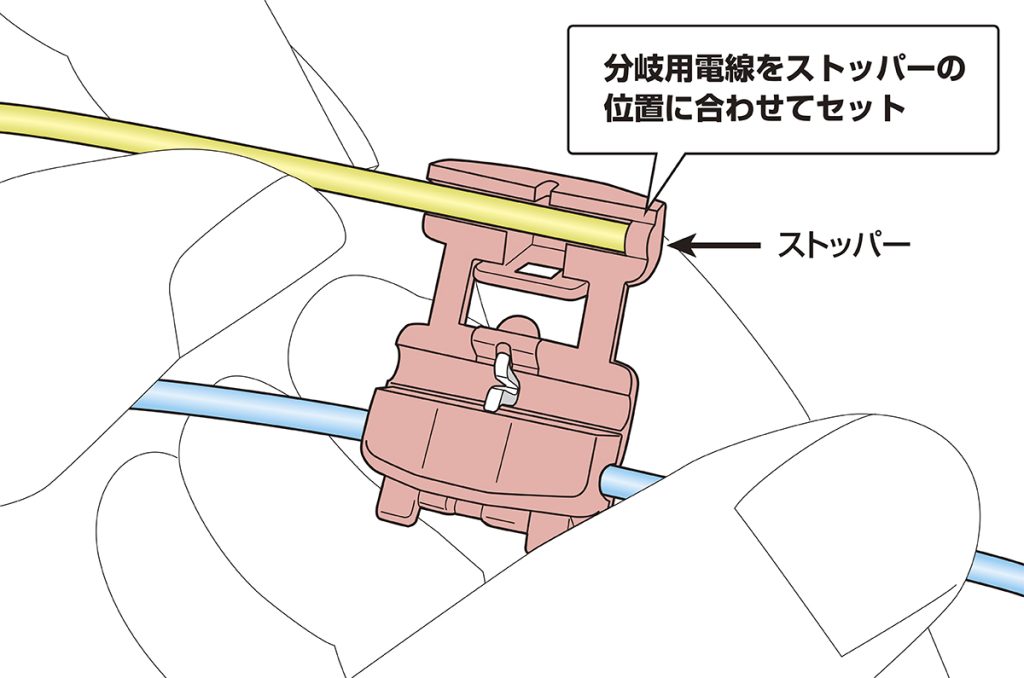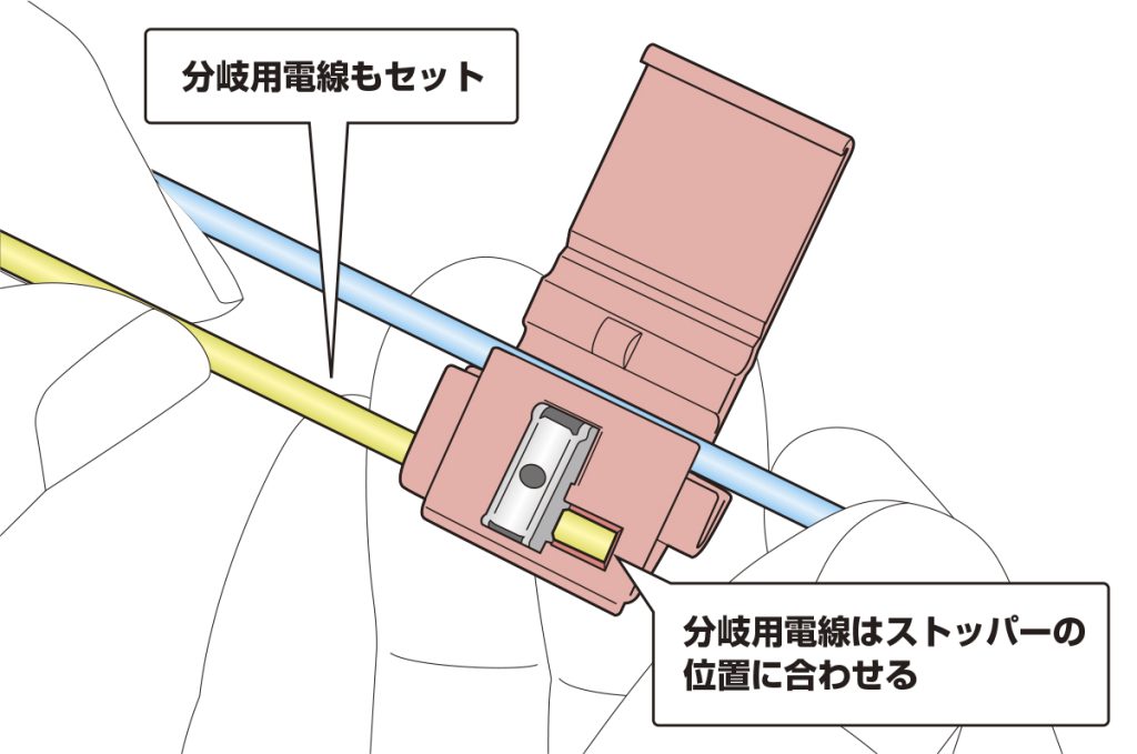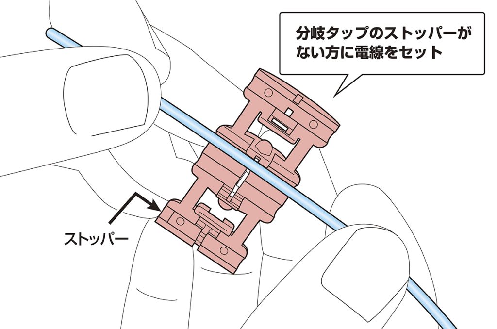 手順3 分岐用電線の先端をストッパーに突き当てる