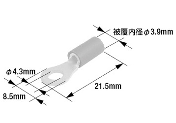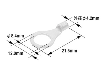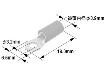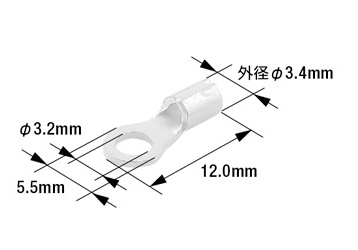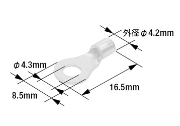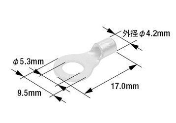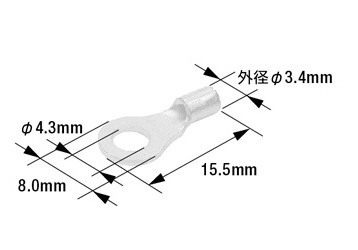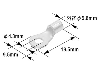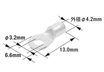 端子先端の穴径(業界用語では“呼び”) 丸形端子を取り付ける相手側のボルト径に合わせて選びます。(例:M4のボルトならM4用の丸形端子)