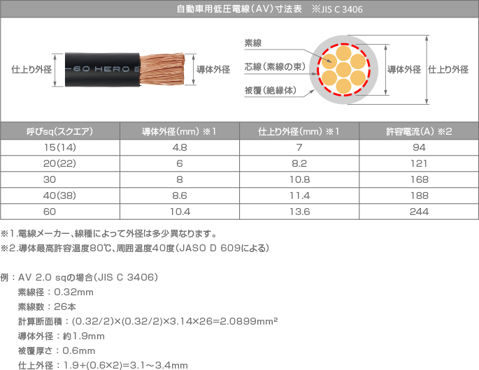 自動車用低圧電線(AV)の太さを確認する方法