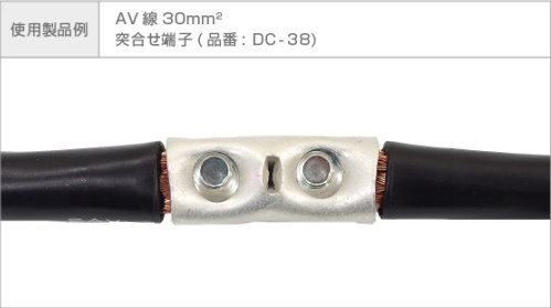 → 電線を両側から差し込み、端子の中央で突き合せて2か所で圧着する